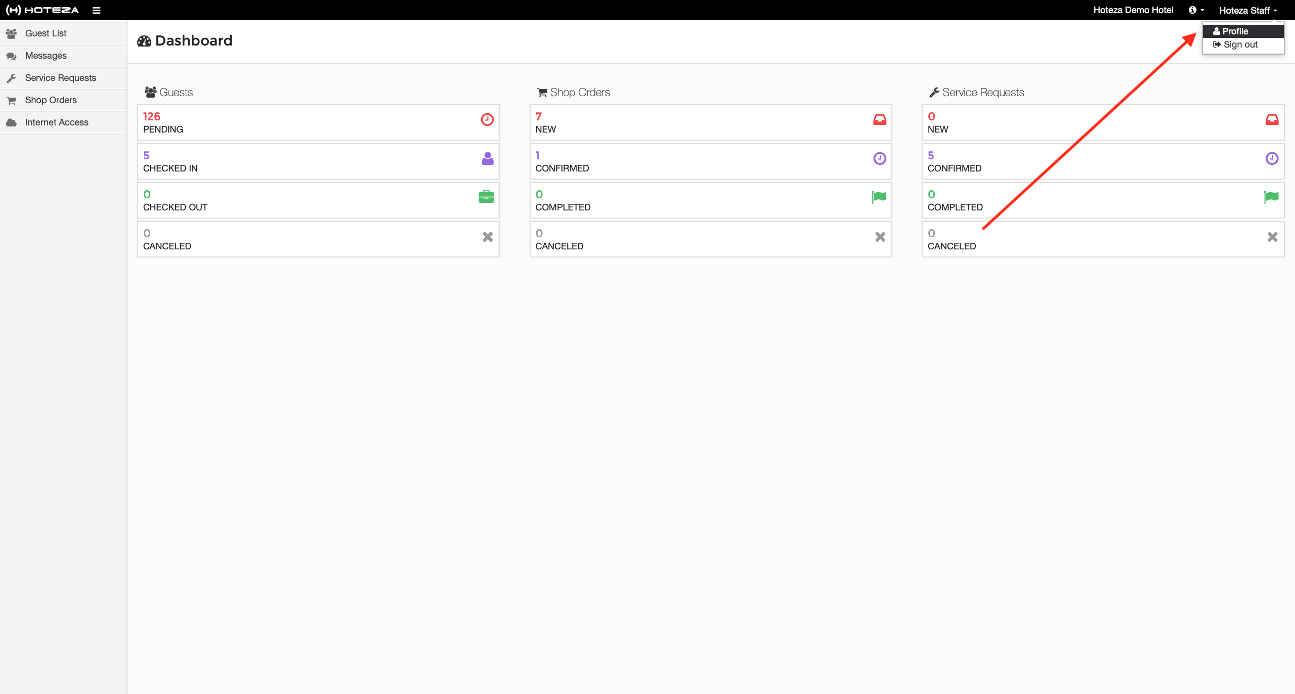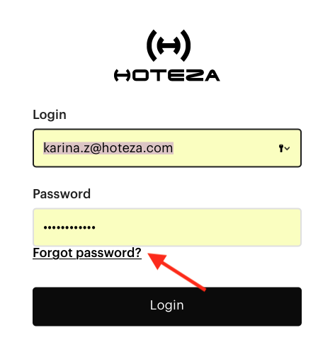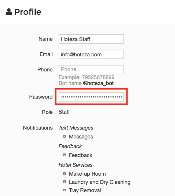Login to Hoteza CMS → click on the upper-right corner → Profile → change password → press Save