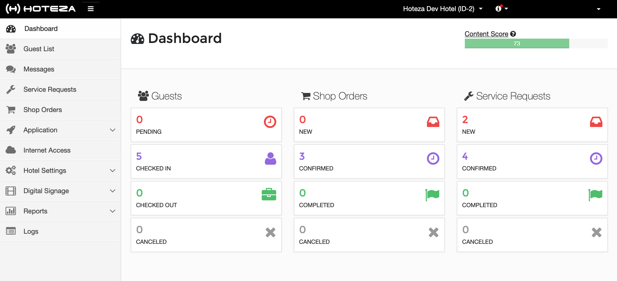 To exit Hoteza CMS, press at the top right corner of a page containing the name of the current Administrator, for example: